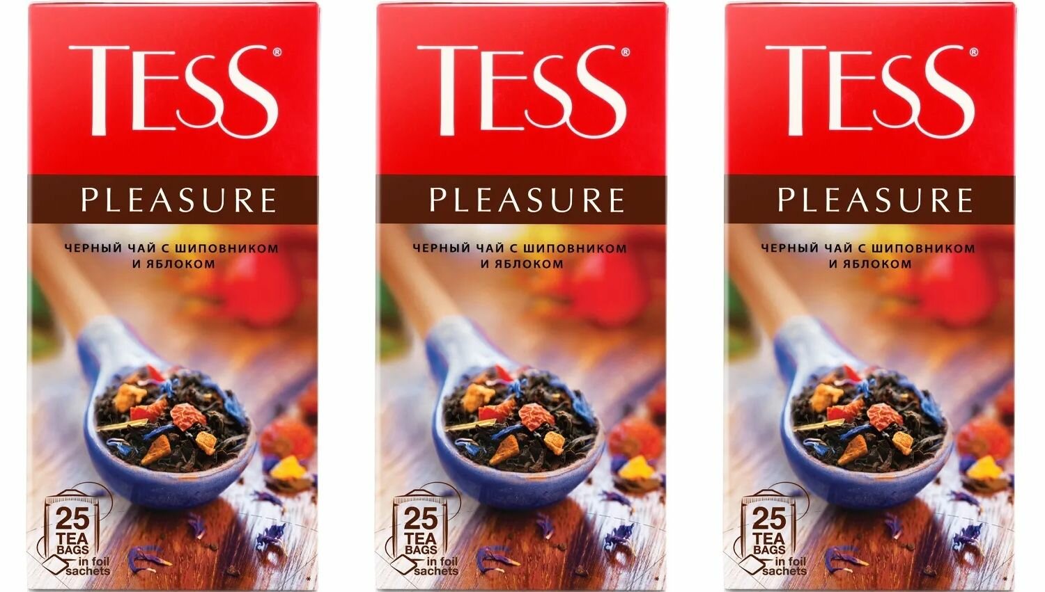 Чай черный TESS Pleasure с шиповником и яблоком, 25 пакетиков