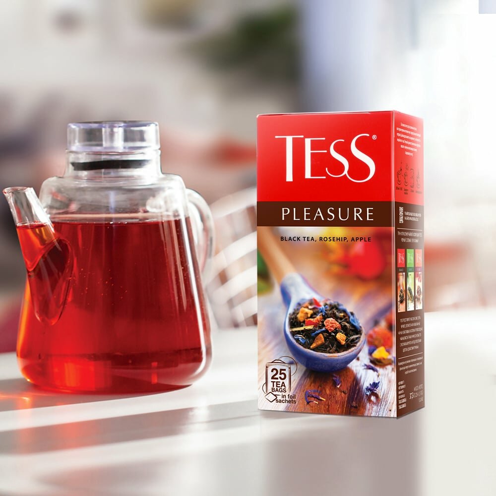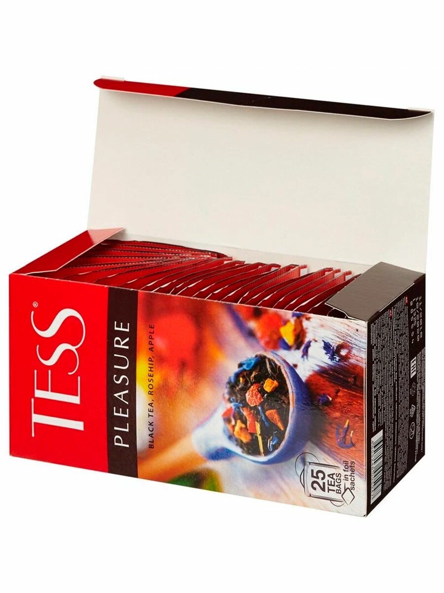 Купить Tess Pleasure, черный чай, со вкусом шиповника и яблока, 25 пакетиков