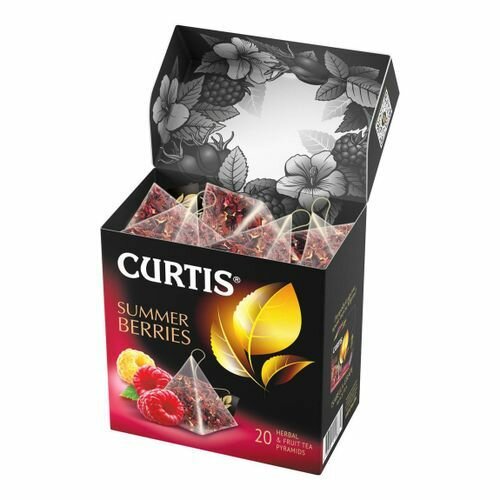 Чай травяной Curtis "Summer Berries" с яркими фруктово-ягодными нотами и кусочками сладкой малины фруктовый ароматизированный 20 пирамидок