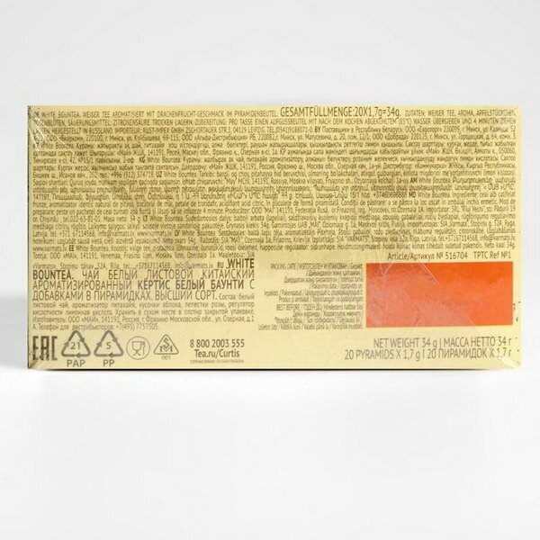 | Дополнительная информация | в одной пирамидке 1,7 г чая |