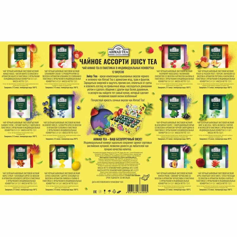 N074 Чай "Ahmad Tea", Ассорти Чайное "Джуси Ти", пакетики в индивид. конвертах, 12 вкусов, (60 пак)
