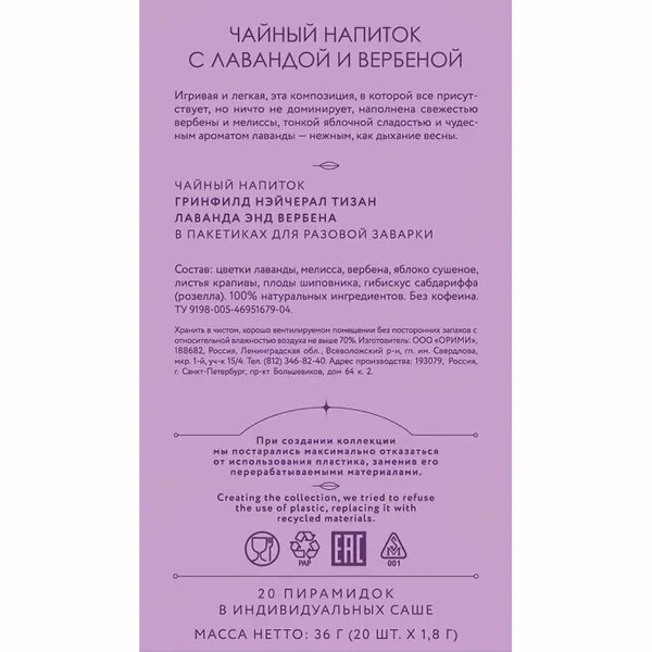 Greenfield Lavender& Verbena (1,8гх20п) интересное: