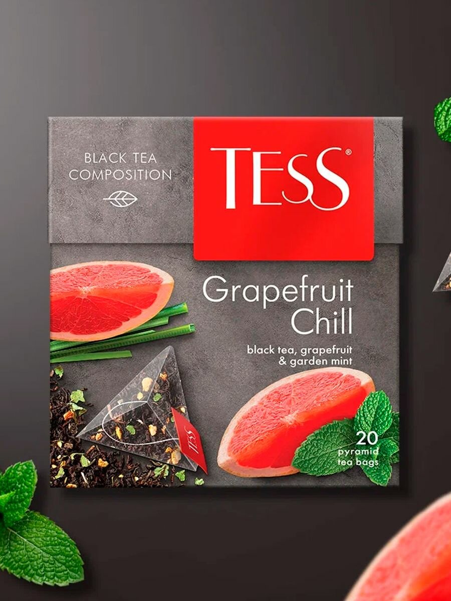 Чай черный TESS Grapefruit Chill в пирамидках картон 20 шт. интересное: