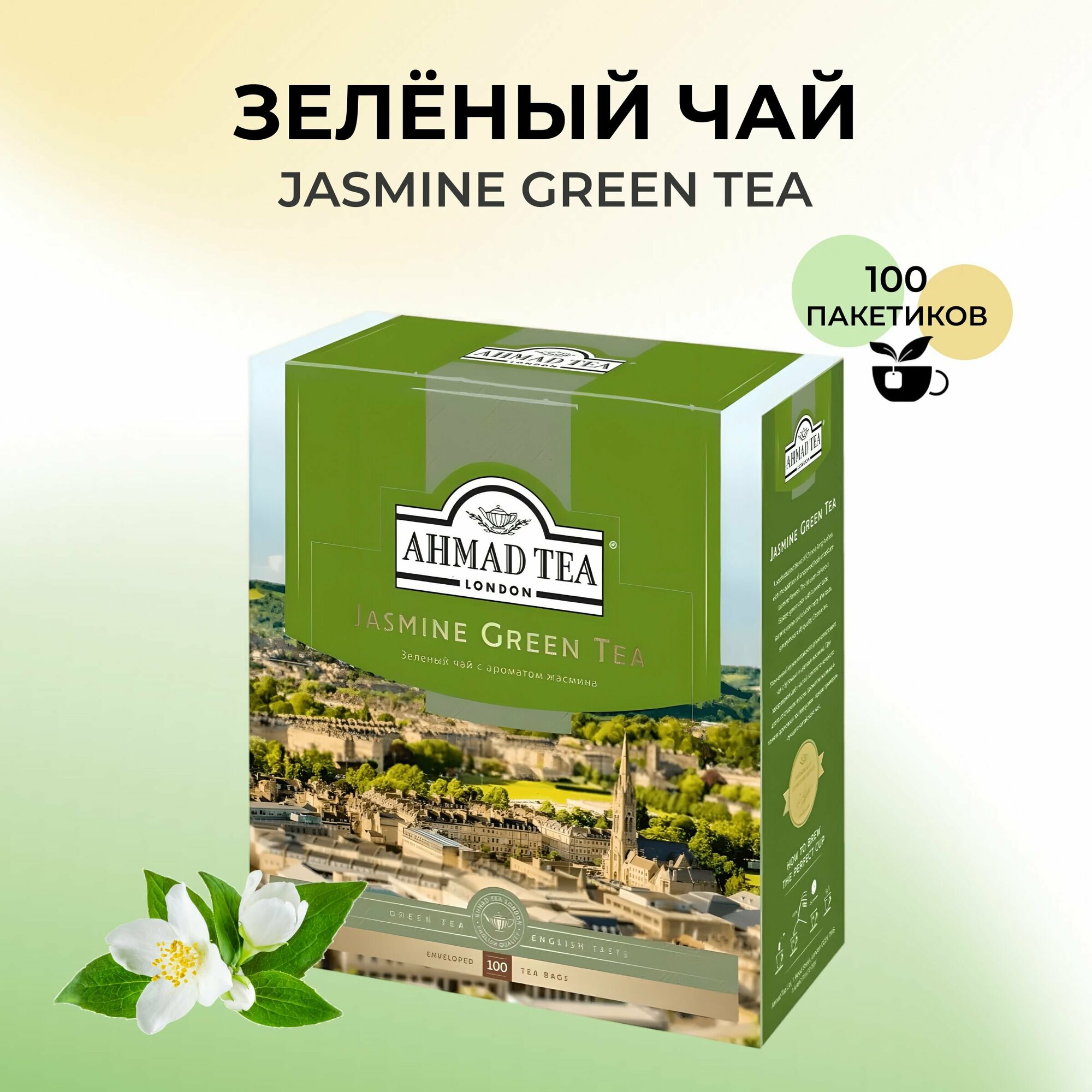 Чай AHMAD (Ахмад) "Jasmine Green Tea" зелёный с жасмином, 100 пакетиков в конвертах по 2 г, 475i-08