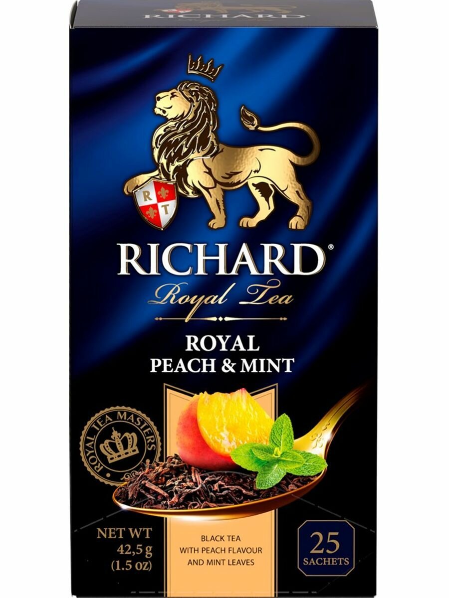 Купить Чай Richard "Royal Peach & Mint" черный ароматизированный 25 сашет