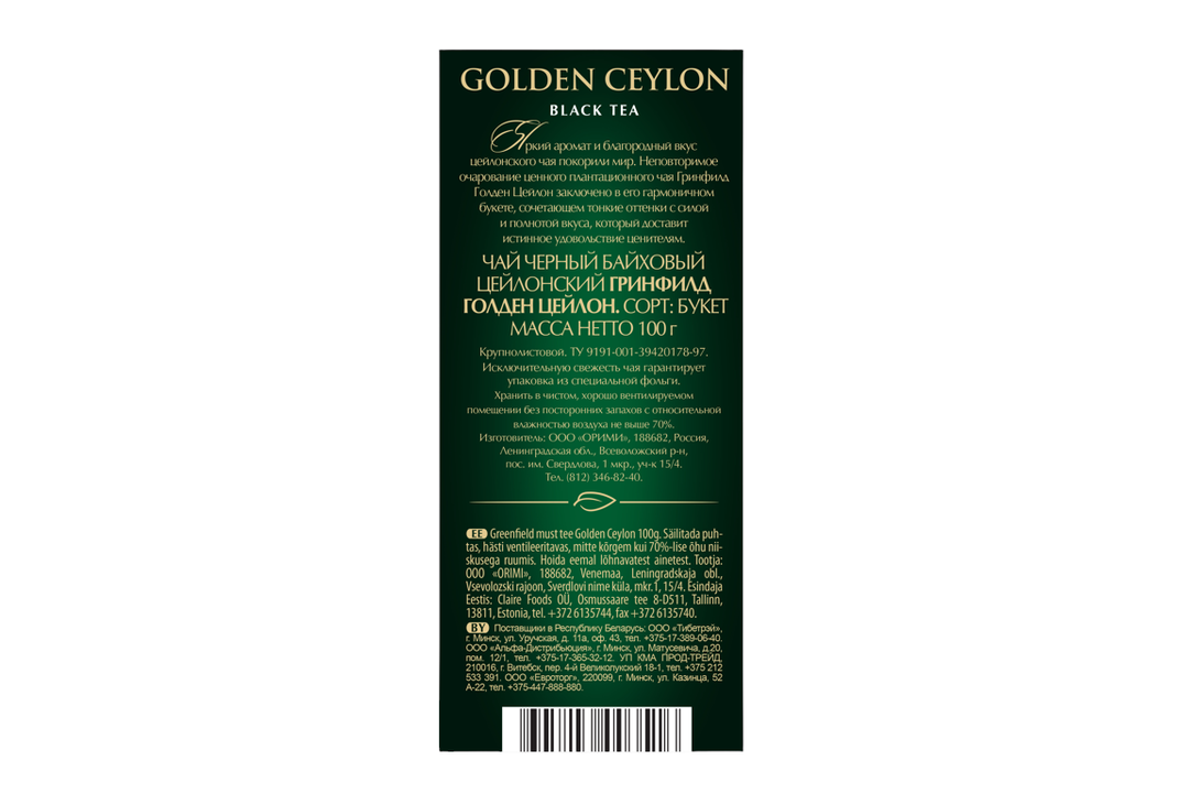 СохранитьГринфилд Голден Цейлон 100г.чай лист.черн. интересное: