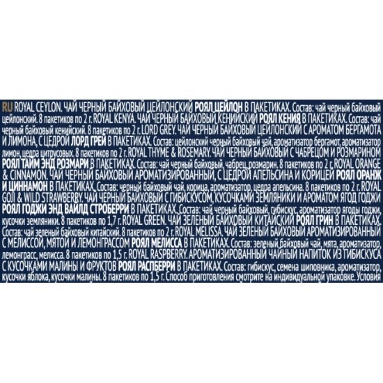 Чай RICHARD "ROYAL SELECTION OF PREMIUM TEAS" ассорти 72 сашет интересное: