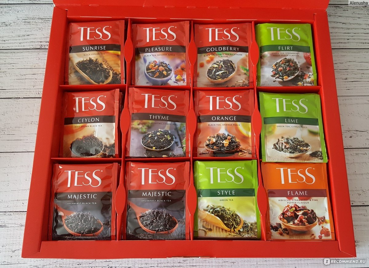 Тесс Набор чая и чай.нап.в пакетиках 12 видов .101г. интересное: