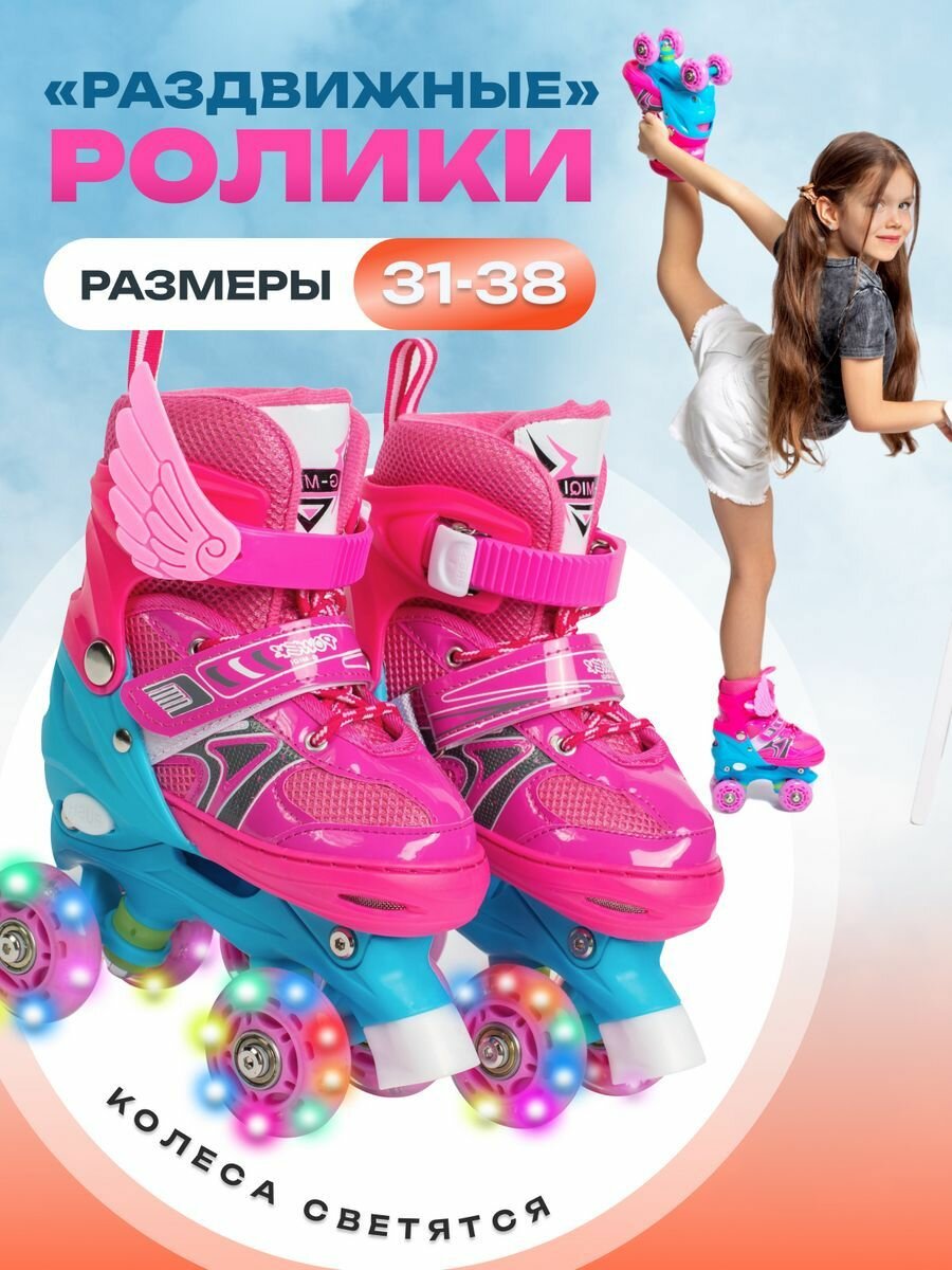 Ролики детские. Раздвижные ролики квады с набором защиты.