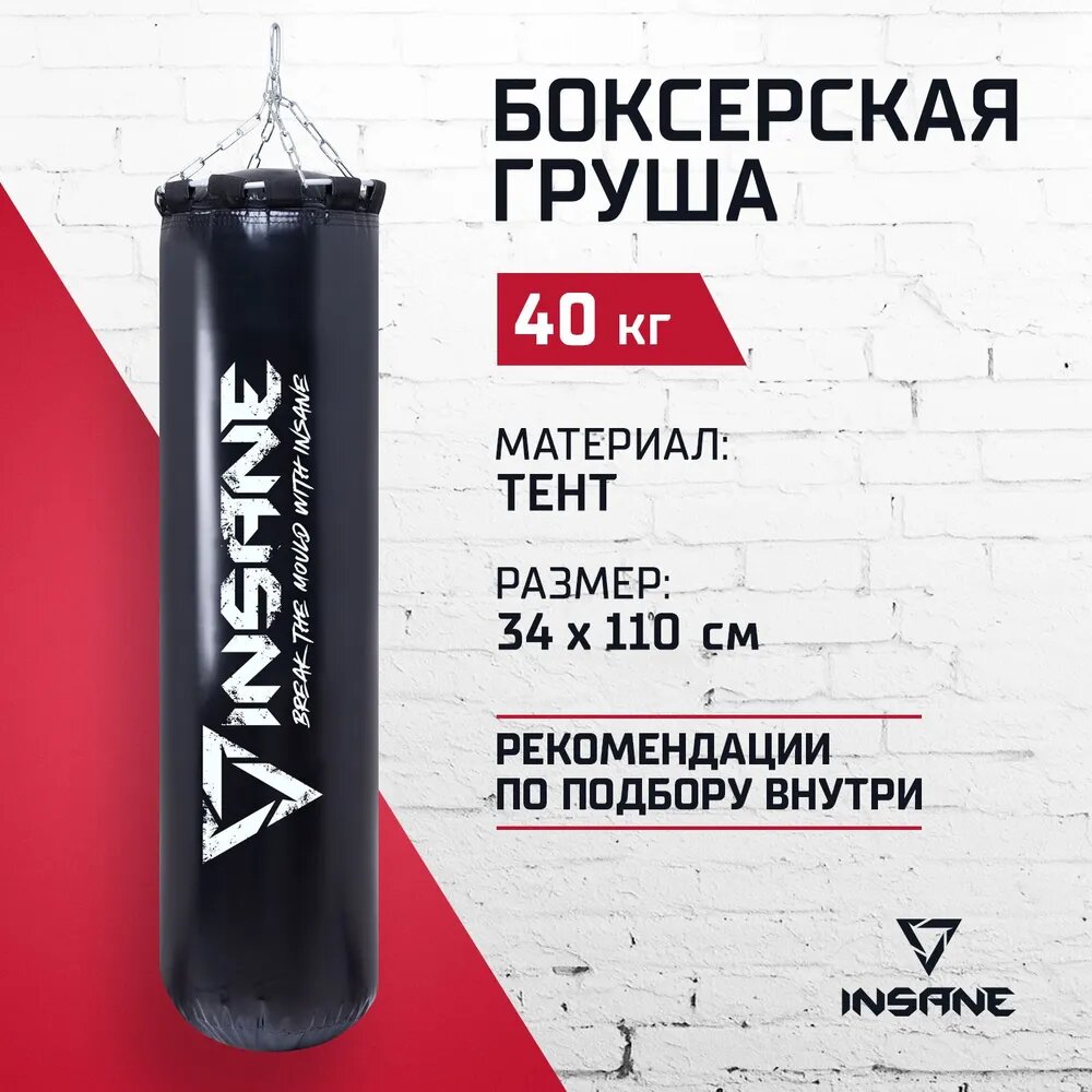 Мешок боксерский INSANE 110 см, 40 кг, тент, черный груша боксерская