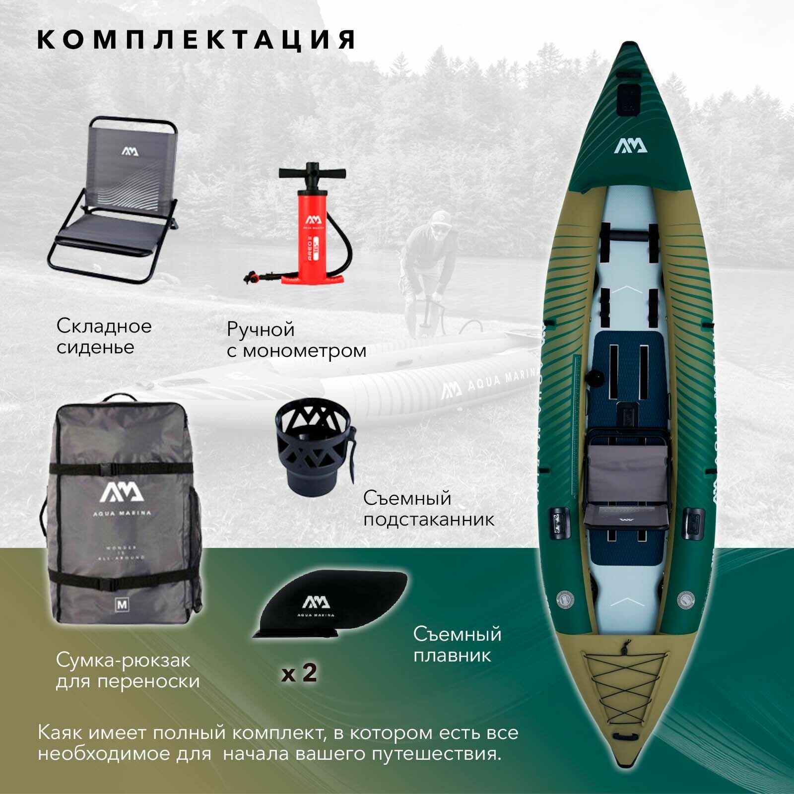 Каяк надувной одно-двухместный для рыбалки Aqua Marina Caliber-398 2023