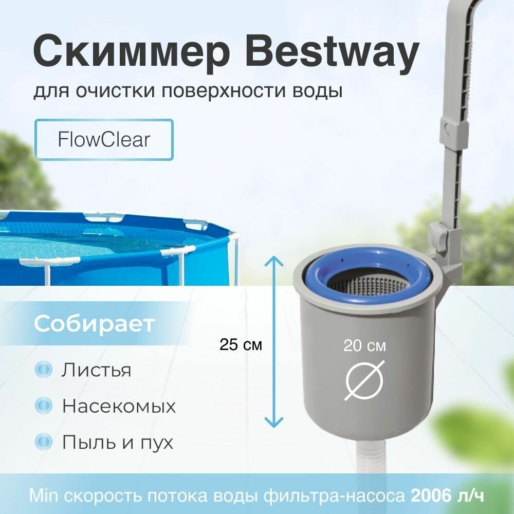Скиммер для бассейна навесной Bestway 58233, для надувных и каркасных бассейнов размером от 244 до 12000 см
