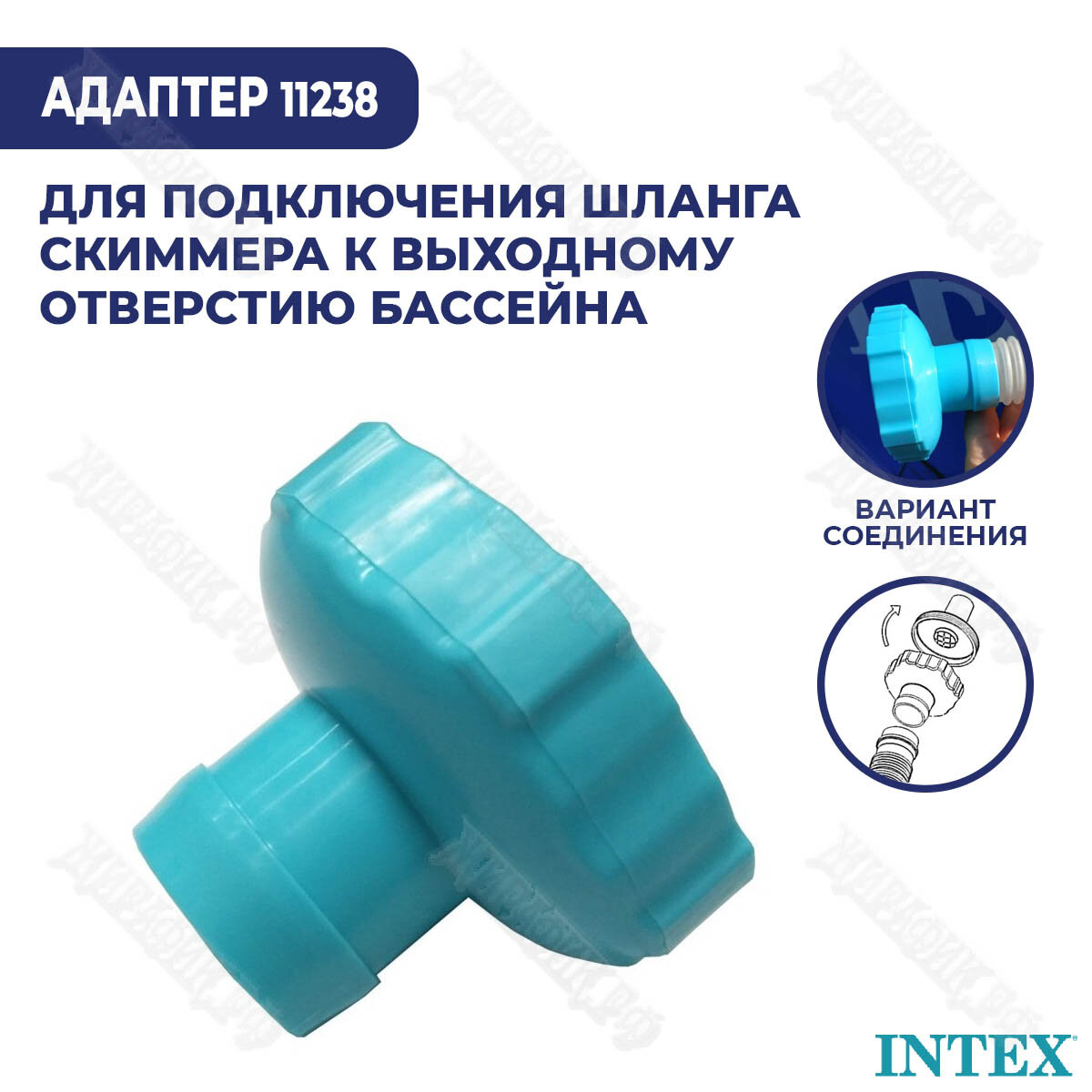 | Дополнительная информация | Переходник Intex 11238 необходим для подключения шланга скиммера, к соединителям (форсункам) на внутренней стороне бассейна, идущим к системе фильтрации. Совместим со скиммером INTEX 28000. 11238, Intex, HOSE ADAPTOR |