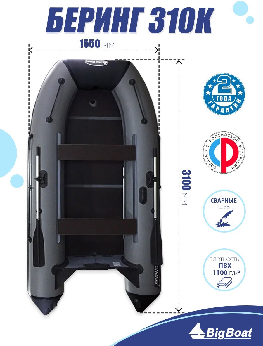 Надувная, под мотор, килевая лодка из ПВХ для рыбалки Bering (Беринг) 310К пол-книжка интересное: