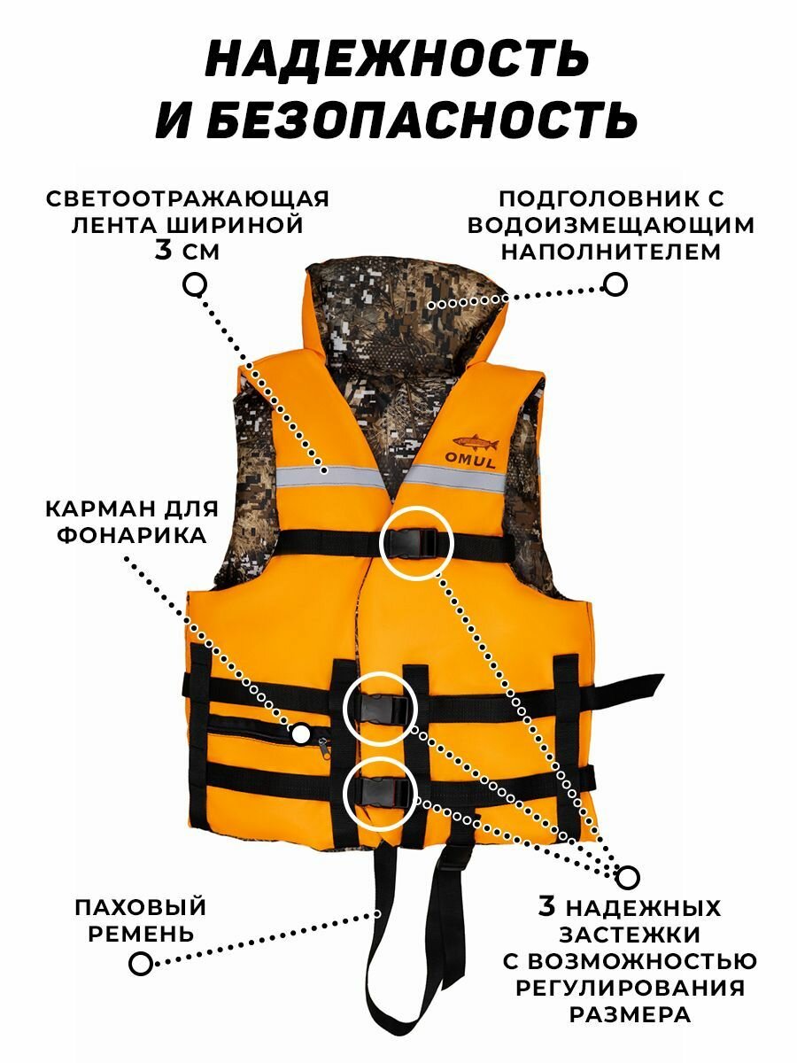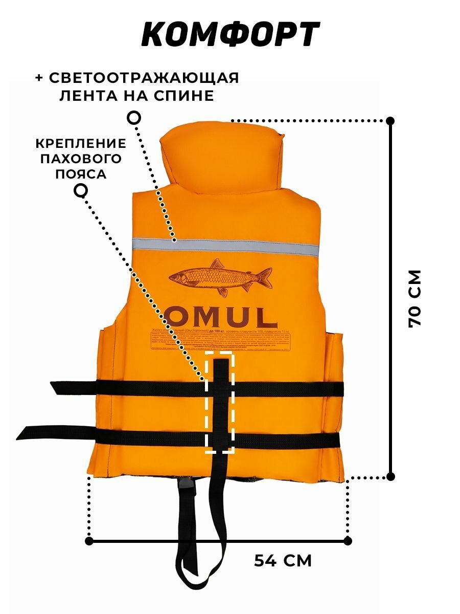 Спасательный жилет OMUL до 100 кг взрослый интересное: