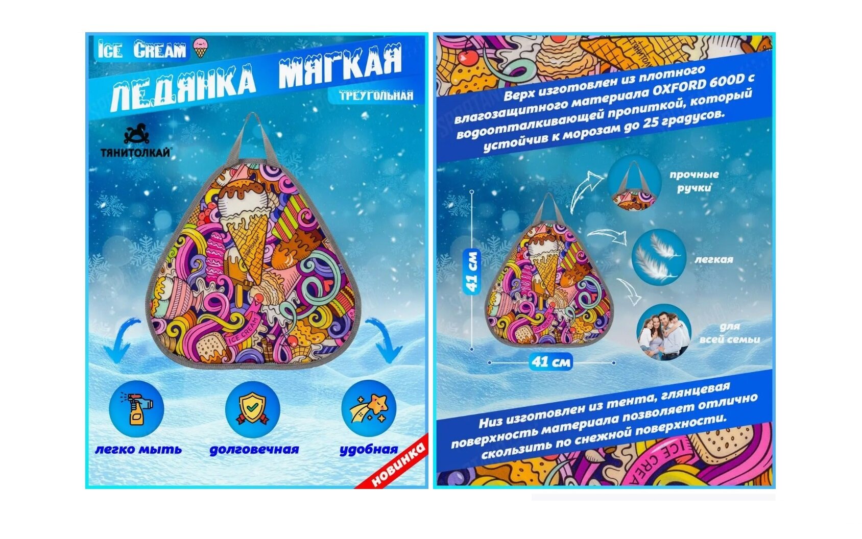Ниже Вы можете прочитать отзывы на Ледянка Тяни-Толкай мягкая треугольная Ice Cream, ознакомится с подробными характеристиками, посмотреть интересные обзоры и фотографии на Ледянка Тяни-Толкай мягкая треугольная Ice Cream.