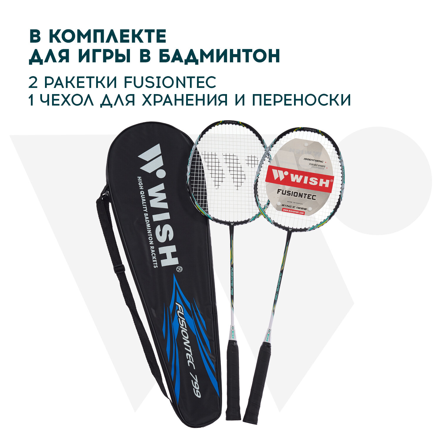 Набор для бадминтона WISH Fusiontec 799K (2 ракетки), синий 1/25 интересное: