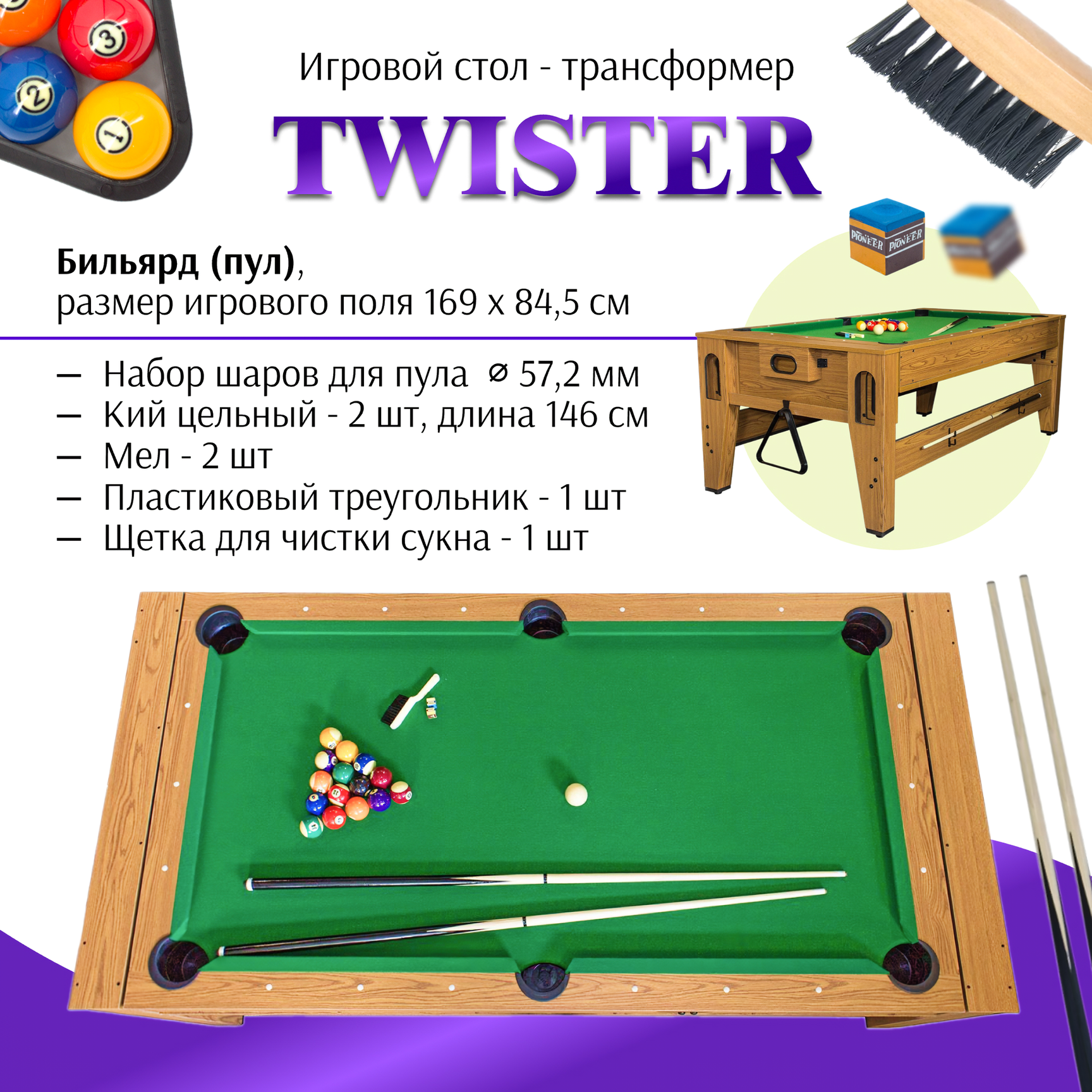 Cтол-трансформер "Twister" 3 в 1 (бильярд, аэрохоккей, настольный теннис) интересное: