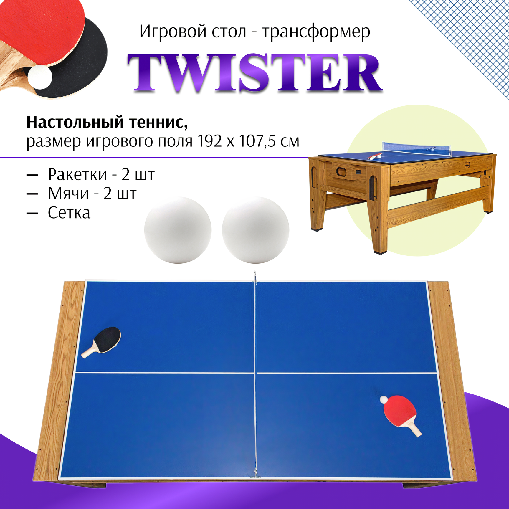 Купить Cтол-трансформер "Twister" 3 в 1 (бильярд, аэрохоккей, настольный теннис)