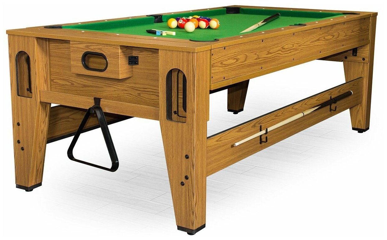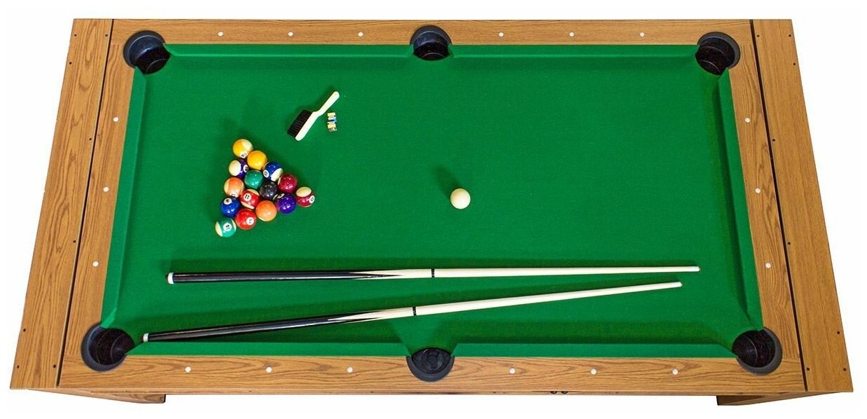 | Подробная комплектация | Набор шаров для пула - диаметр 57,2 мм Кий цельный - 2 шт, длина 146 см Мел - 2 шт Пластиковый треугольник - 1 шт Щетка для чистки сукна - 1 шт Биты - 4 шт Шайбы (62 мм) - 4 шт Ракетки - 2 шт Мячи - 2 шт Сетка |