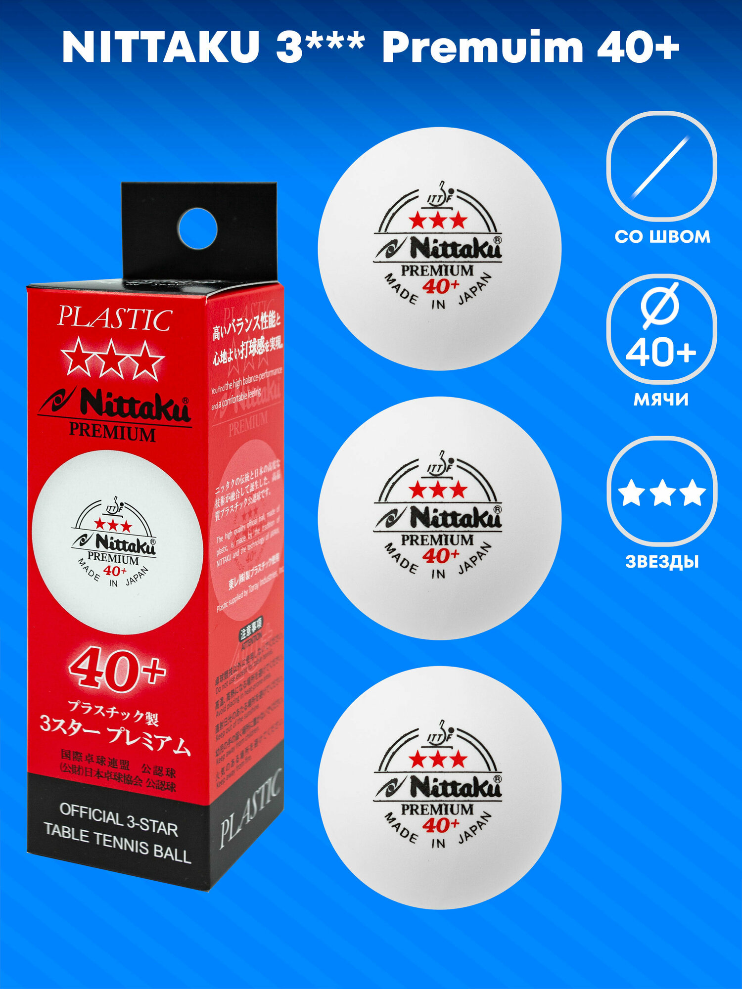Мячи для настольного тенниса NITTAKU 3*** Premuim 40+, бел. 3 шт. интересное: