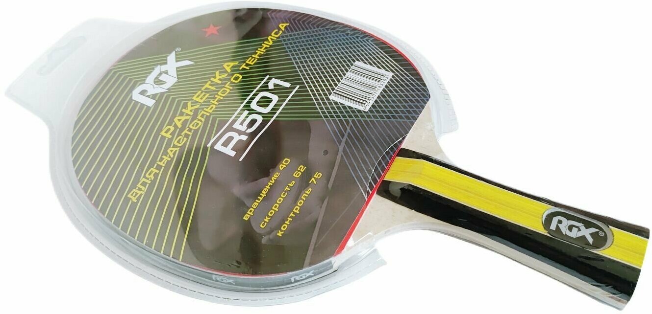 Ракетка для настольного тенниса, RGX R501, 1 звезда, толщина губки 1.8мм, основание 5 слоев, коническая ручка