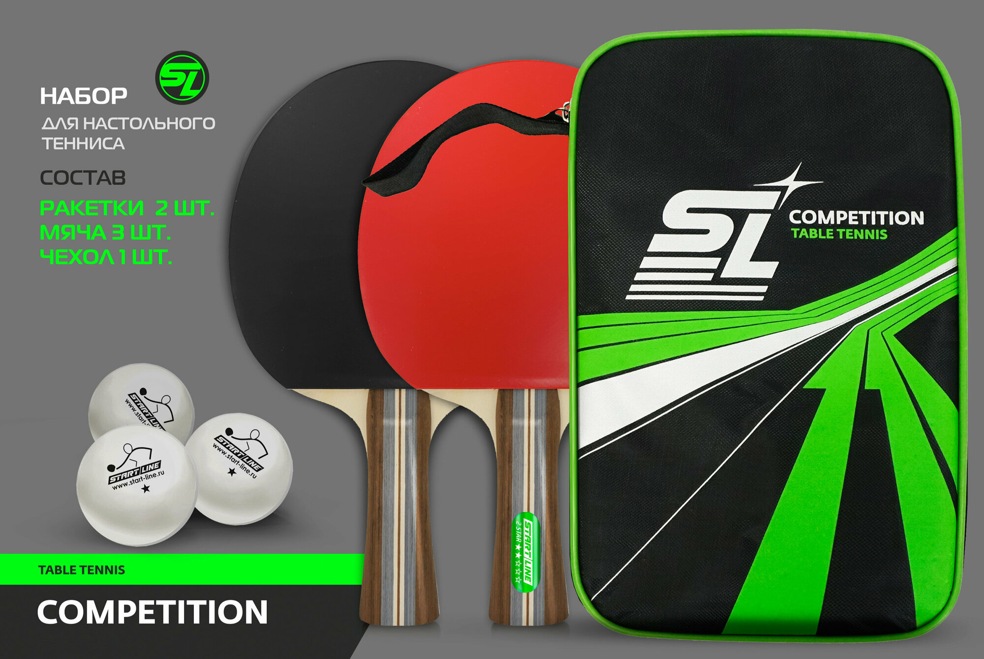 Купить Набор Start Line COMPETITION 2 ракетки 2*, 3 мяча 1* в чехле