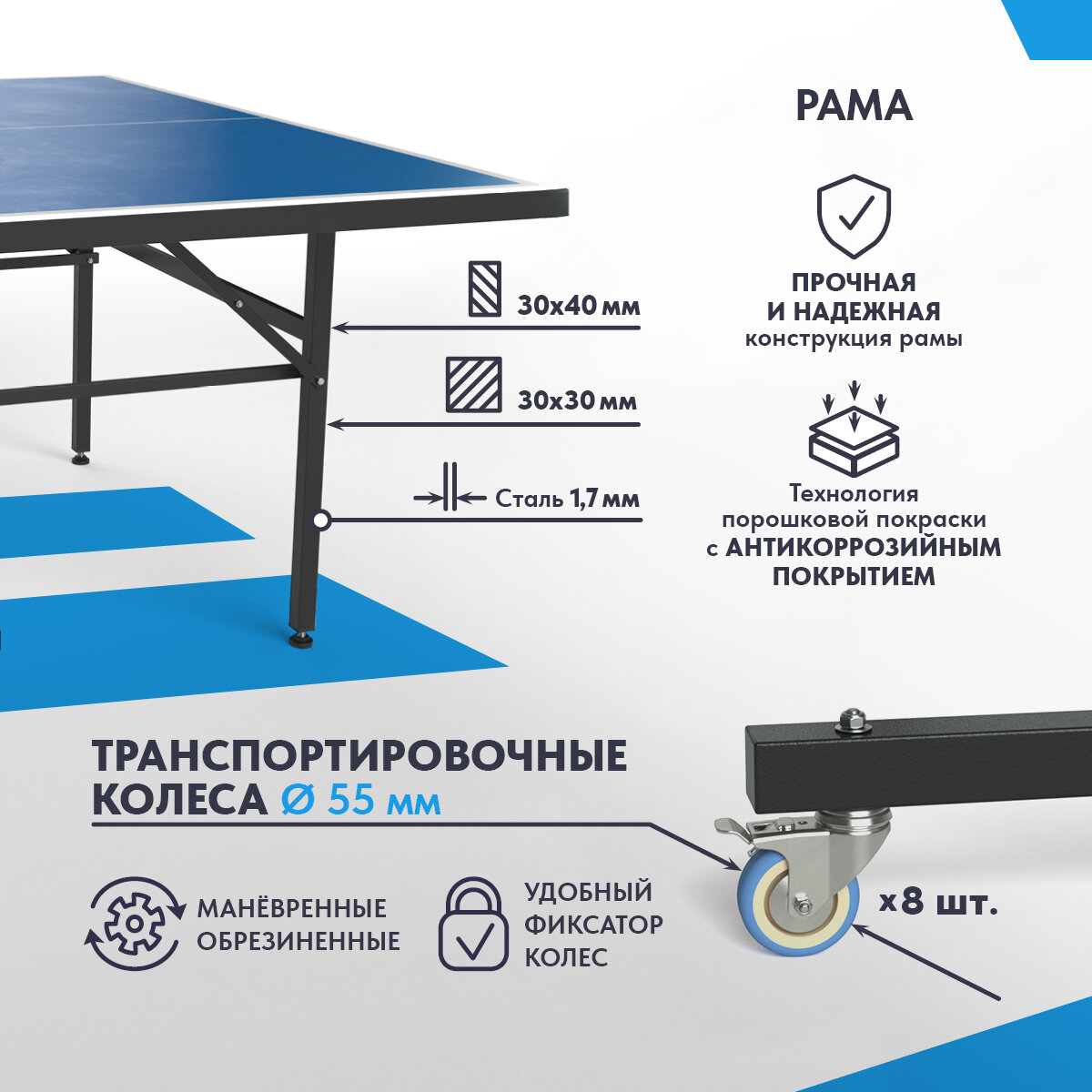 Теннисный стол всепогодный уличный Wallaby Outdoor S200 outdoor 4mm (blue), складной игровой стол для пинг понга (тенниса) для улицы всесезонный интересное: