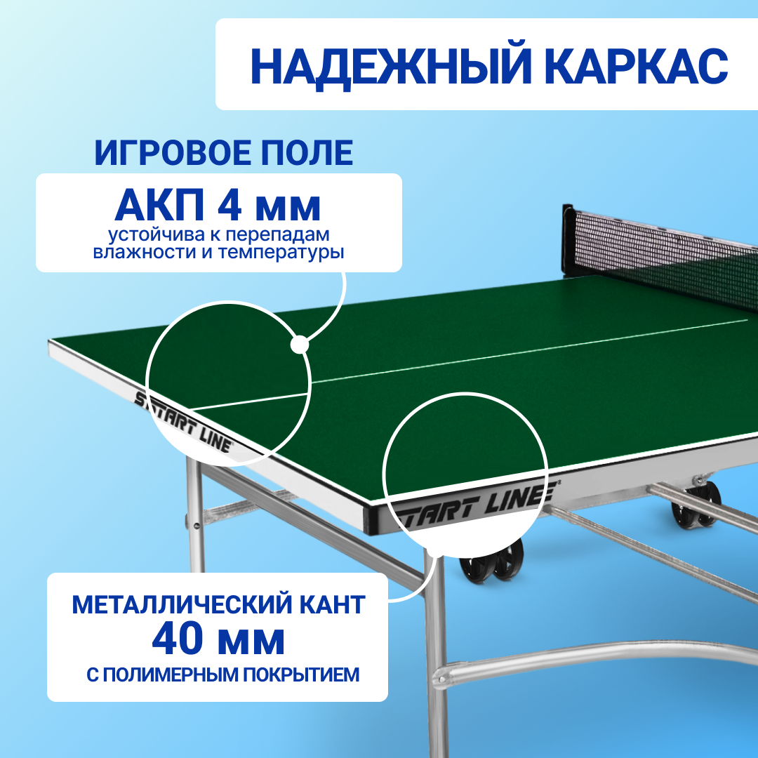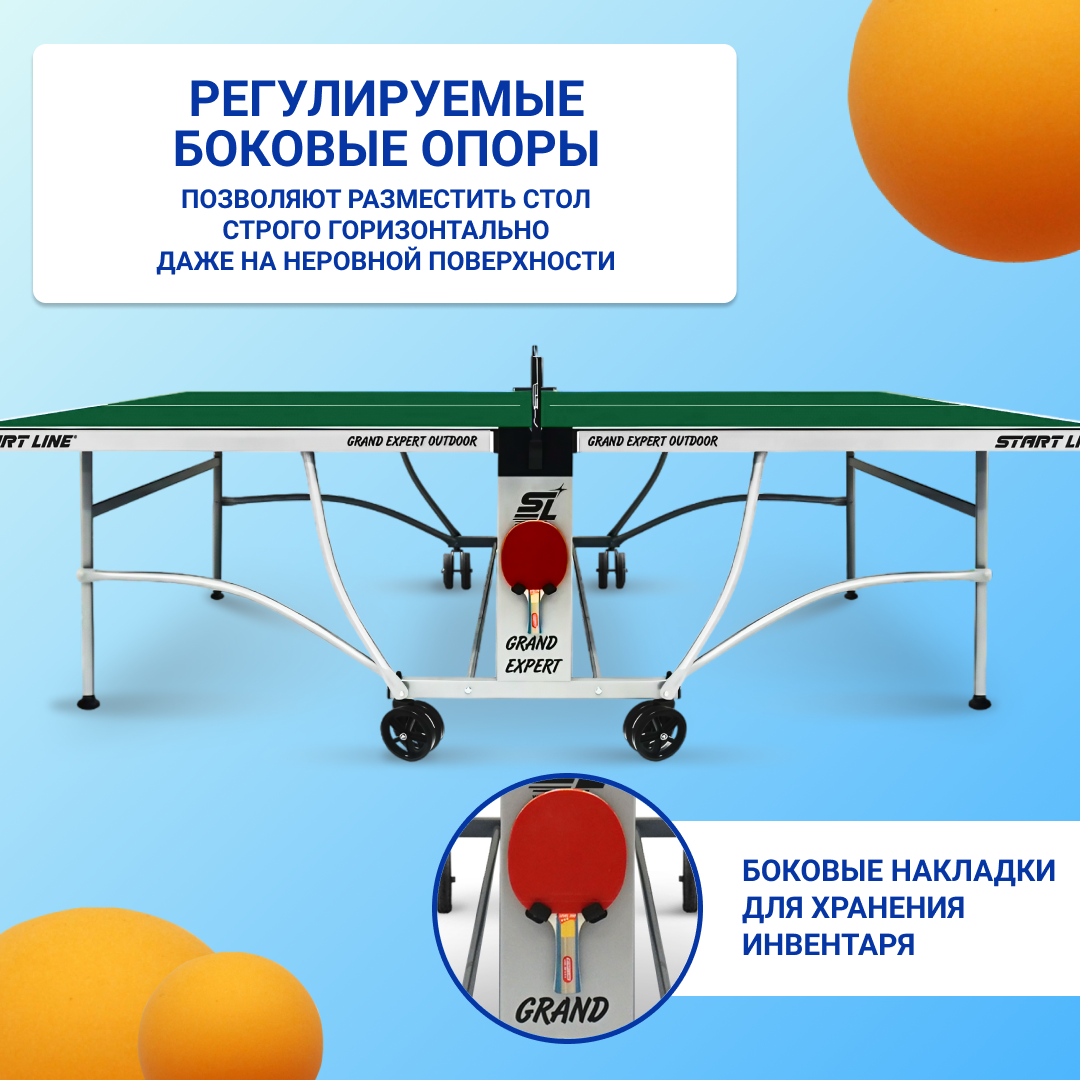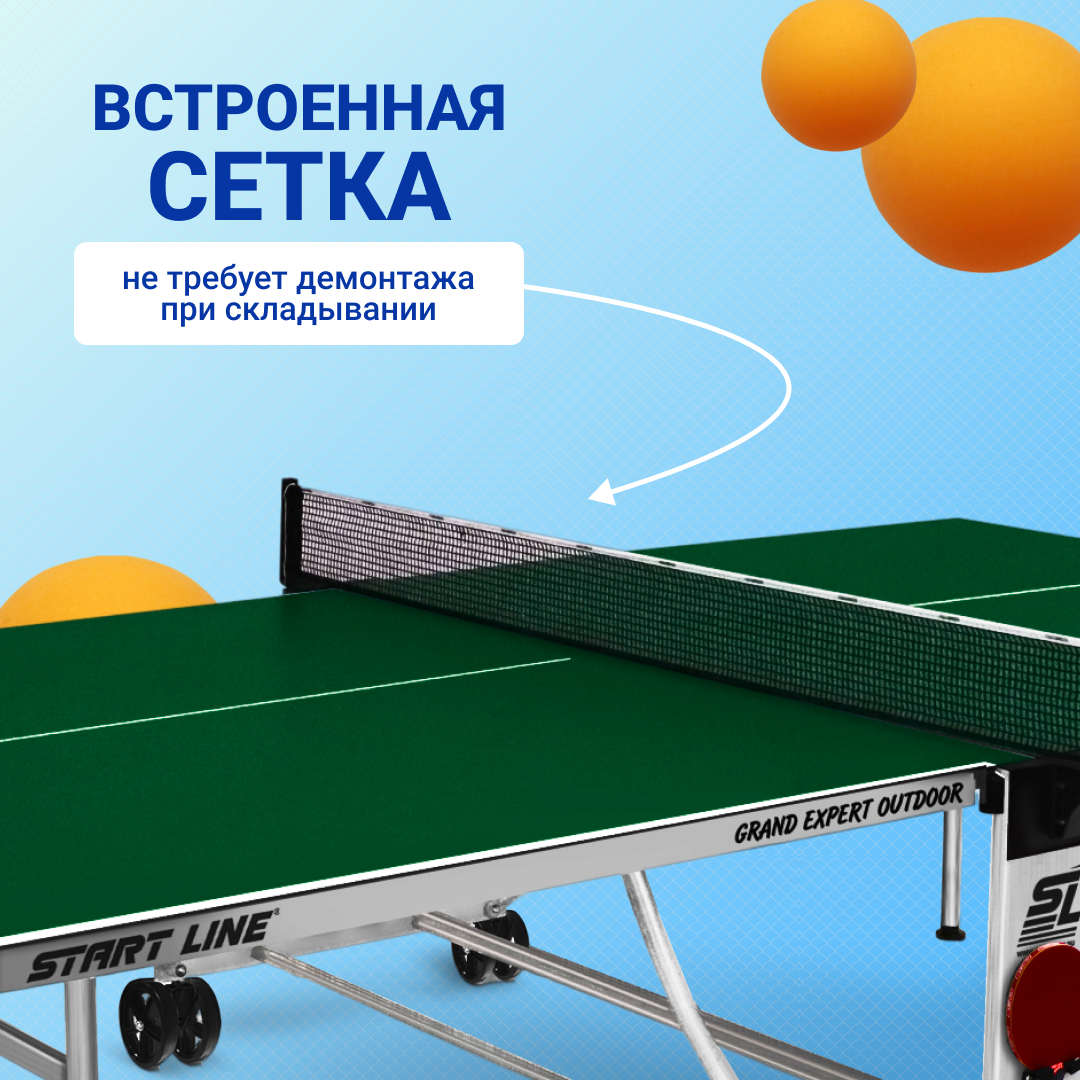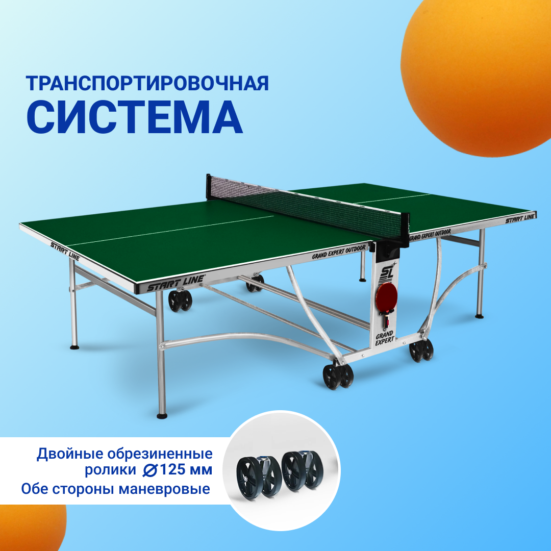 Стол теннисный Start Line GRAND EXPERT 4 Всепогодный зеленый, для улицы, с колесами, сеткой интересное: