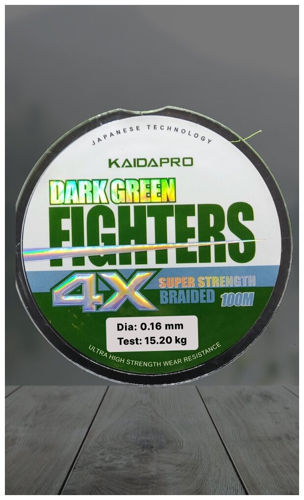 Плетеный шнур FIGHTERS 4X KAIDAPRO dark green 100m 0,16 мм 15,20кг
