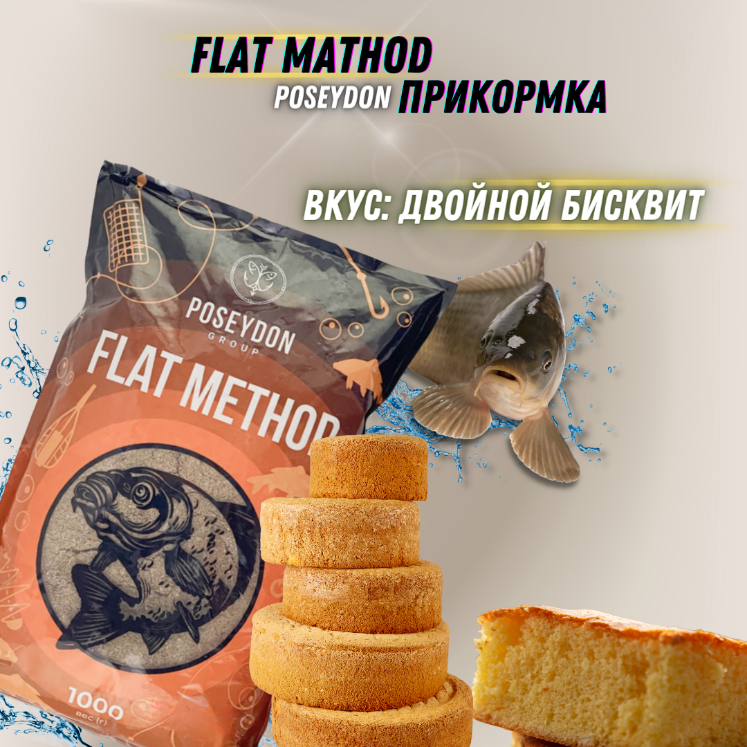 Купить Прикормка для ловли методом Flat "Двойной Бисквит" POSEYDON 1кг
