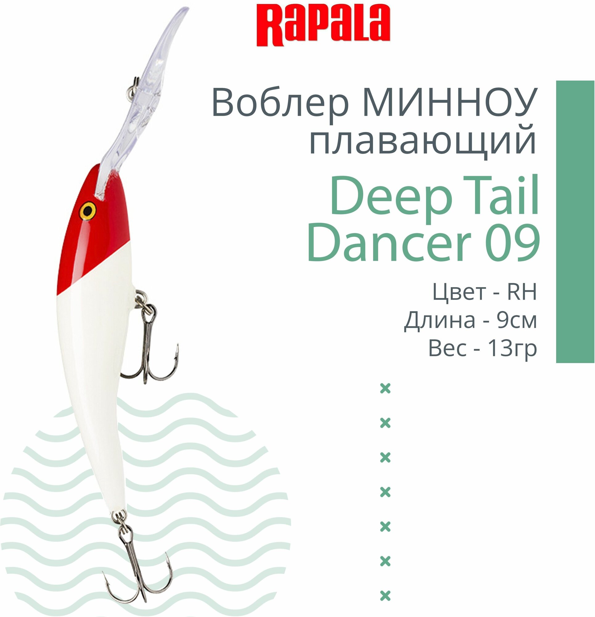 Купить Воблер для рыбалки RAPALA Deep Tail Dancer 09, 9см, 13гр, цвет RH, плавающий