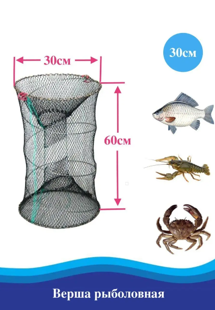 Верша рыболовная 2 шт/Мережа/Кубарь, Раколовка, длина 60 см, диаметр 30 см