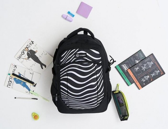 TORBER T9355-22-ZEB Рюкзак torber class x, черно-серый с принтом зебра, полиэстер 900d, 46 x 32 x 18 см интересное: