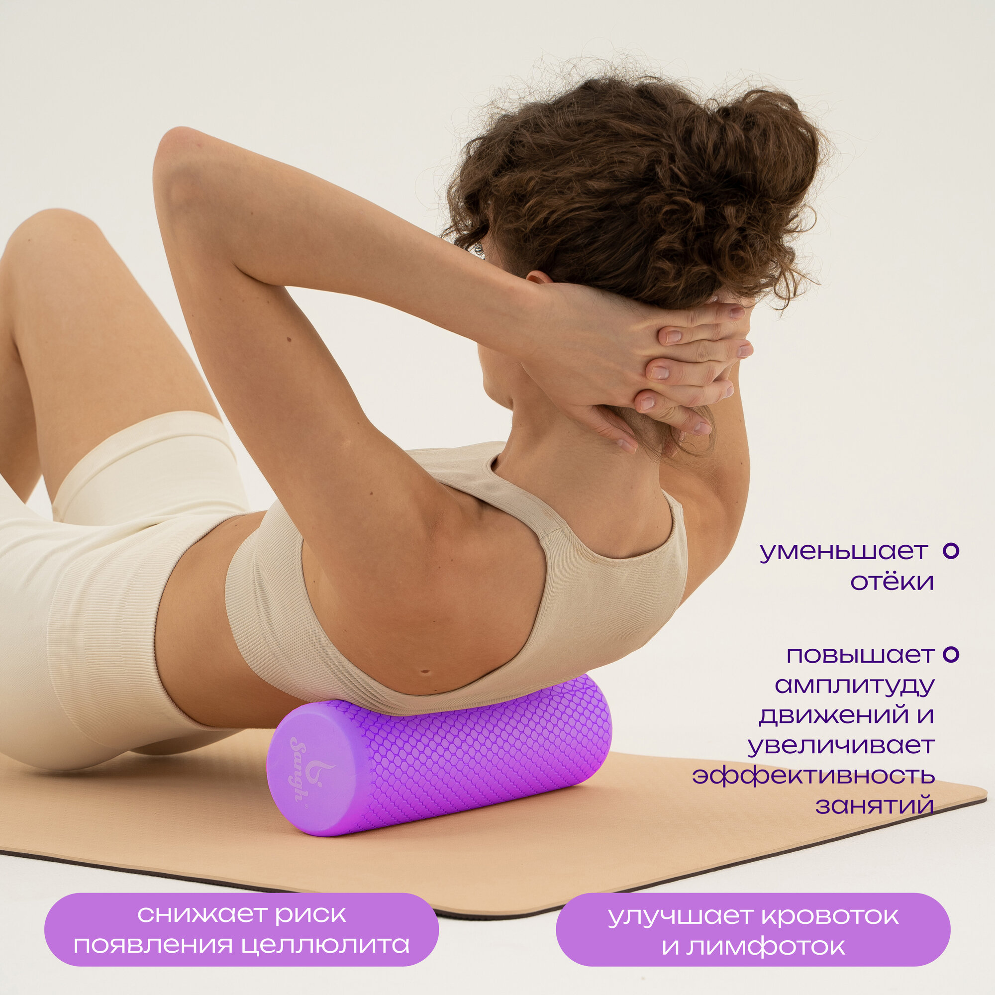 Ролик массажный Sangh, 30х9 см, цвет фиолетовый