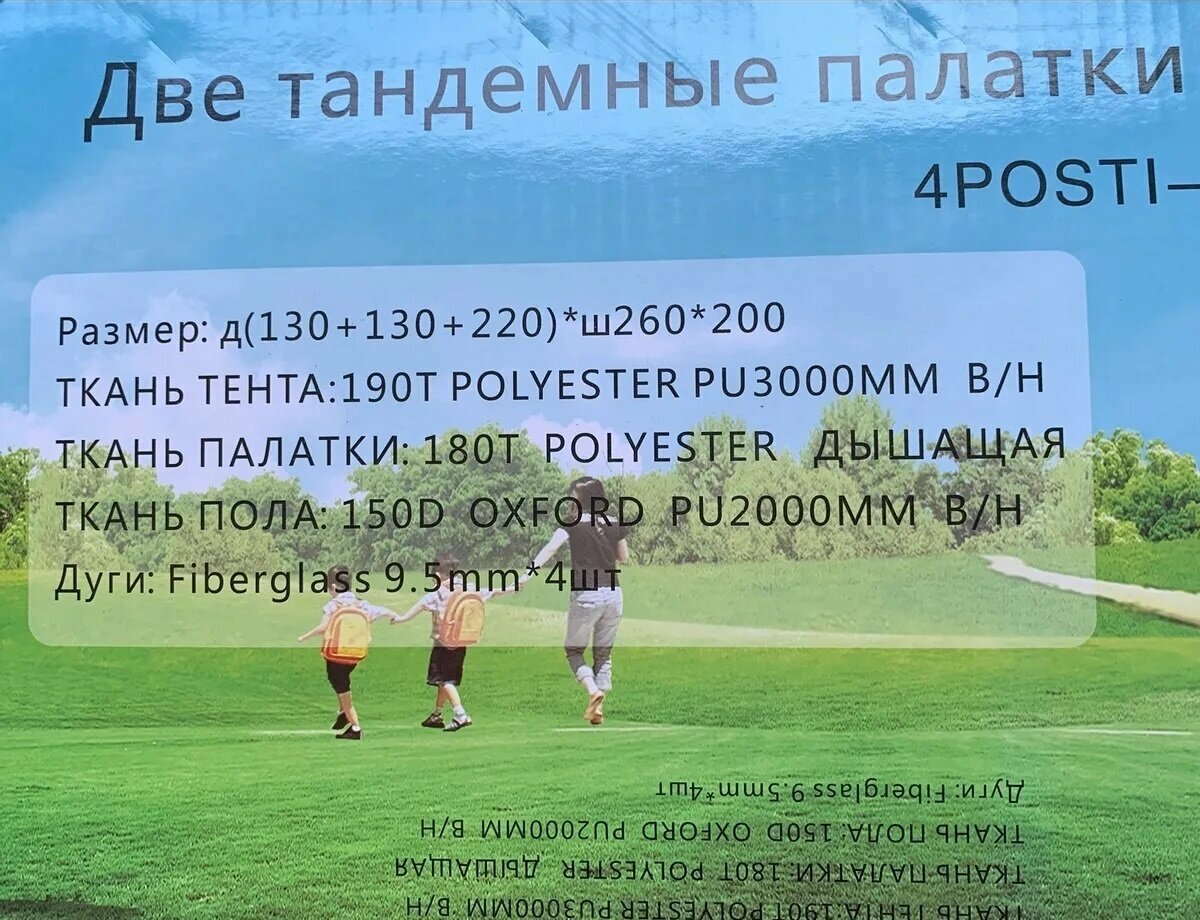 | Водостойкость тента/дна | 3000 / 1000 мм в.ст. |