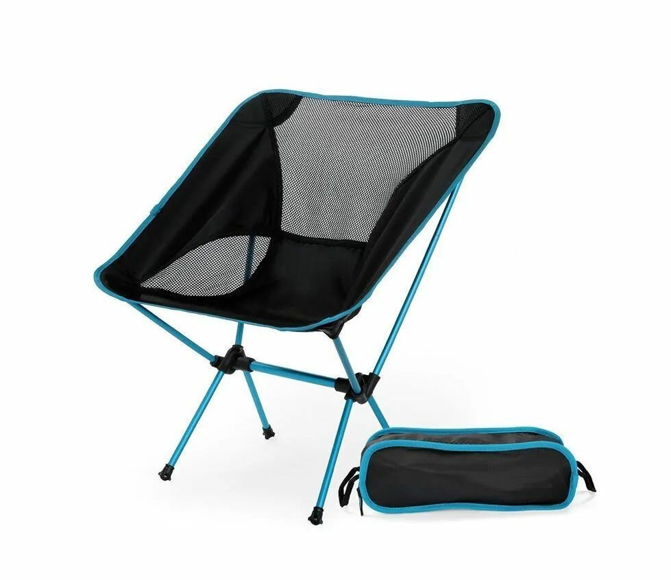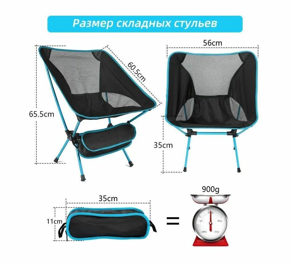 Складной стул туристический со спинкой для рыбалки и пикника голубой / складное кресло интересное: