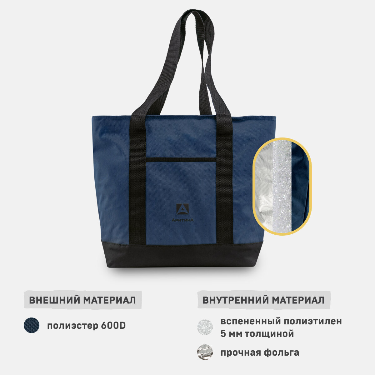 Термосумка холодильник Арктика 3400-17 черная 17 литров шоппер с ручками и внешним карманом