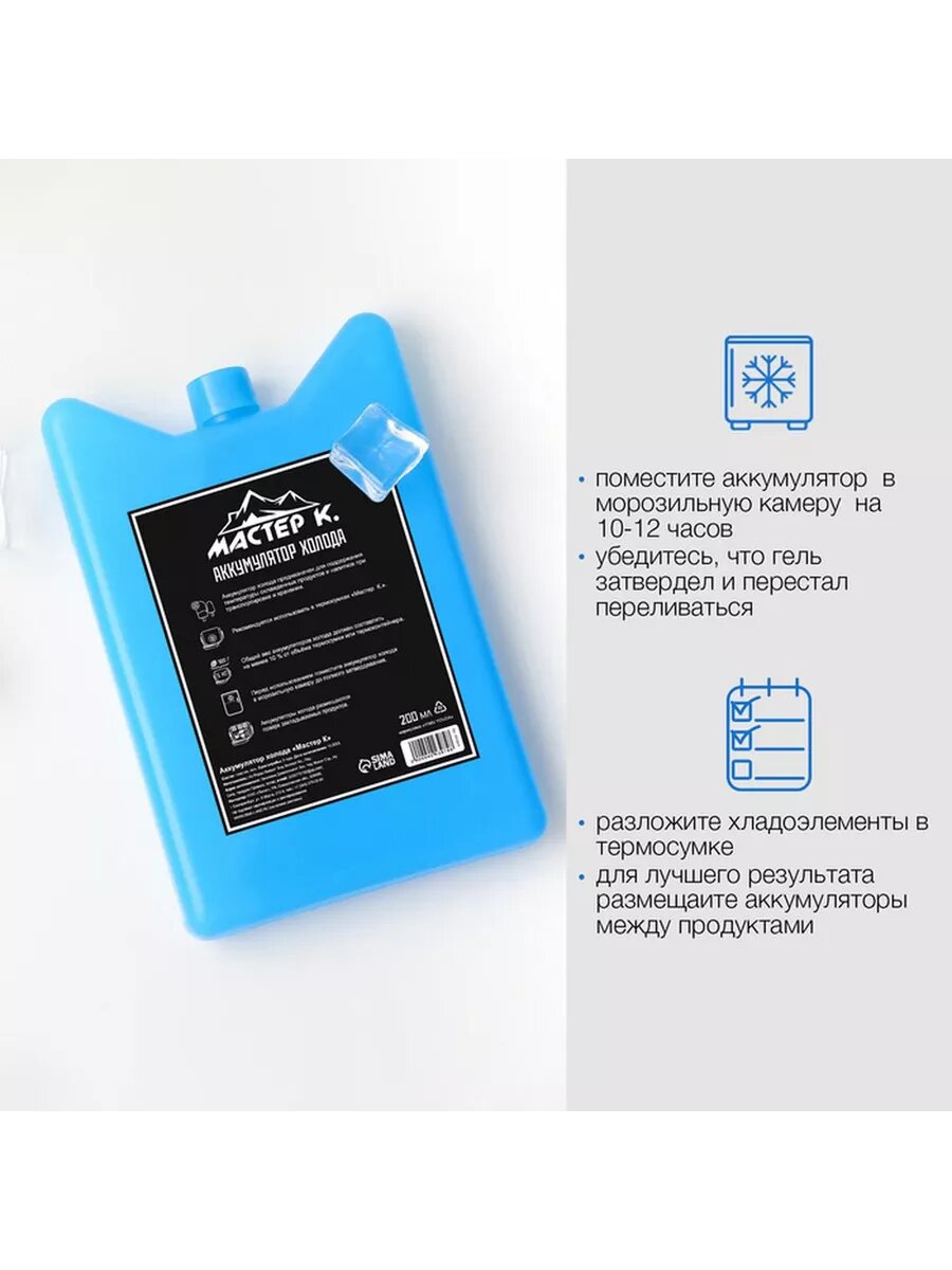 Аккумулятор холода "Мастер К", 200 мл, 15 х 8.5 х 2.5 см, 9396080 интересное: