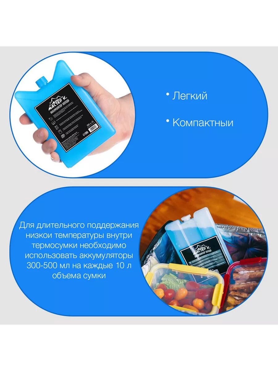 Аккумулятор холода - гелевый хладоэлемент для термосумки "Мастер К.", до 20 ч, 200 мл