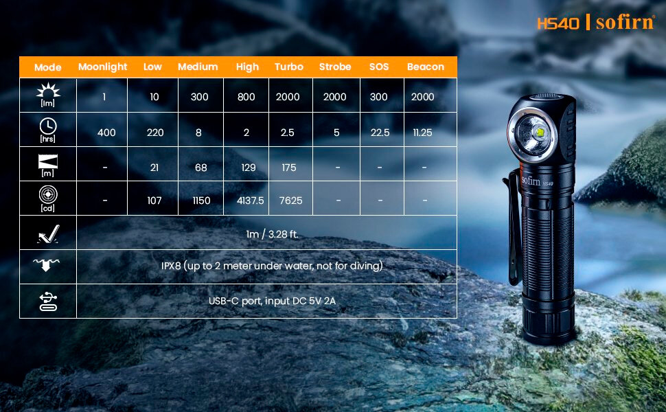 Sofirn HS40 USB C налобный фонарь 2000 лм, 6000-6500K