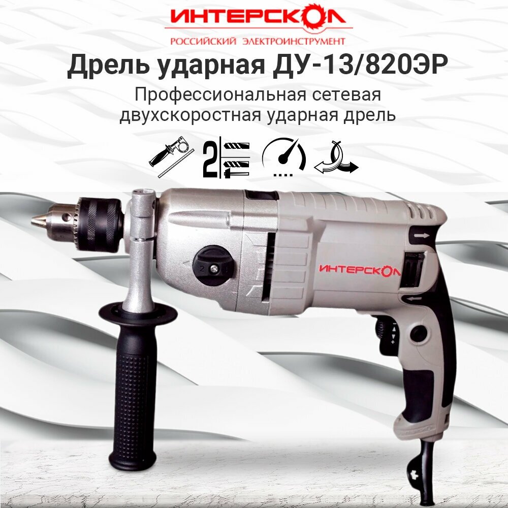 Дрель ударная сетевая ИНТЕРСКОЛ ДУ-13/820 ЭР двухскоростная