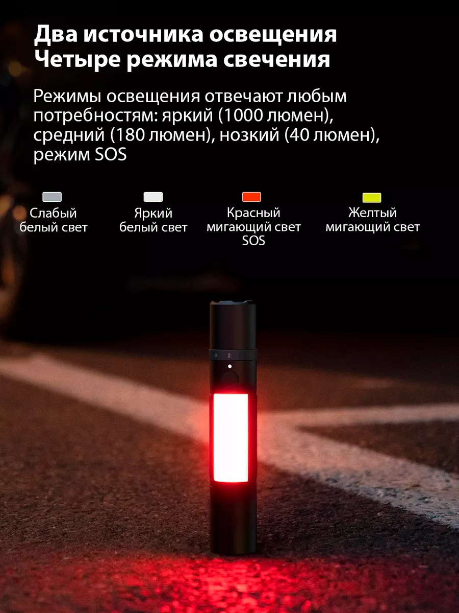 | Особенности | USB-зарядка / влагозащита / дальний свет / дневной белый свет / желтый свет / зарядное устройство / индикация заряда / кабель USB / красный свет / магнитное крепление / маячок / регулировка угла свечения / регулятор уровня пламени / сигнальный режим / теплый белый свет / ударопрочный корпус / фокусировка с зумом |