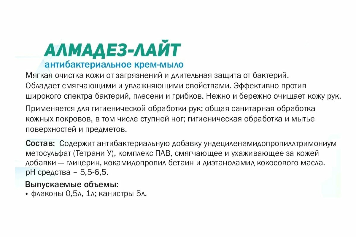 Крем-мыло Алмадез Лайт, антибактериальное, 5 л (МАЛ-05) интересное: