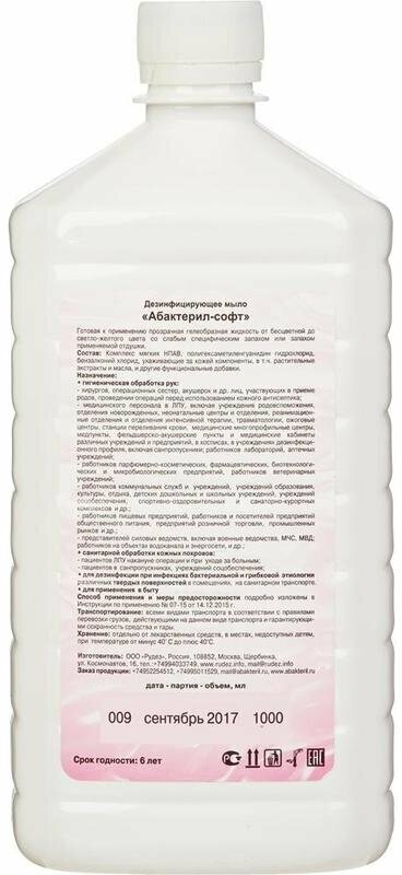 17 шт. Абактерил-Софт, дезинфицирующее мыло 1 л. ГОСТ 12.1.007-76