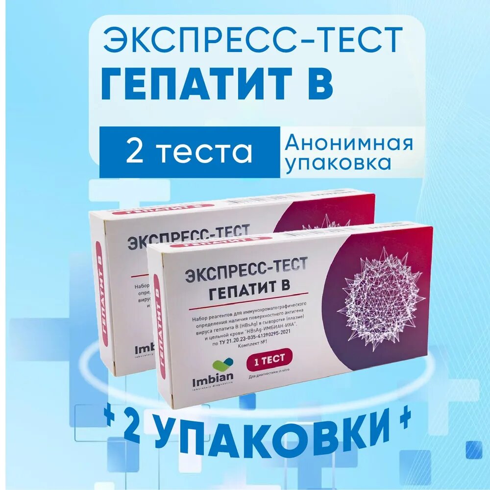 Экспресс тест имбиан на Гепатит В, 2 теста, комплект из 2х упаковок, анализы на Гепатит Б