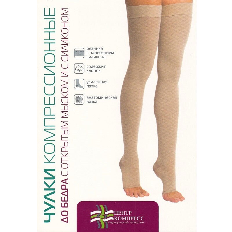 Чулки компрессионные Центр Компресс ЧС1(п), 1 класс, c открытым носком и силиконом (ЧС1(п)-К/4) бежевый 4