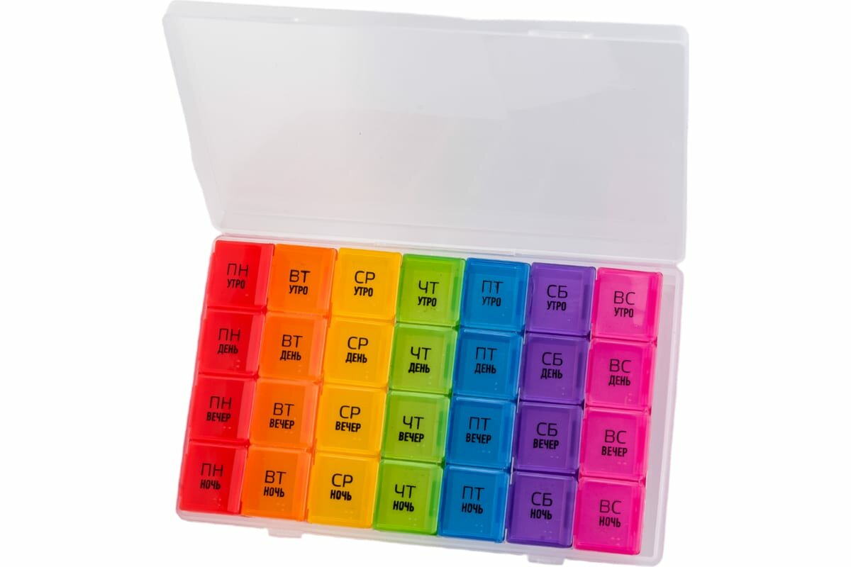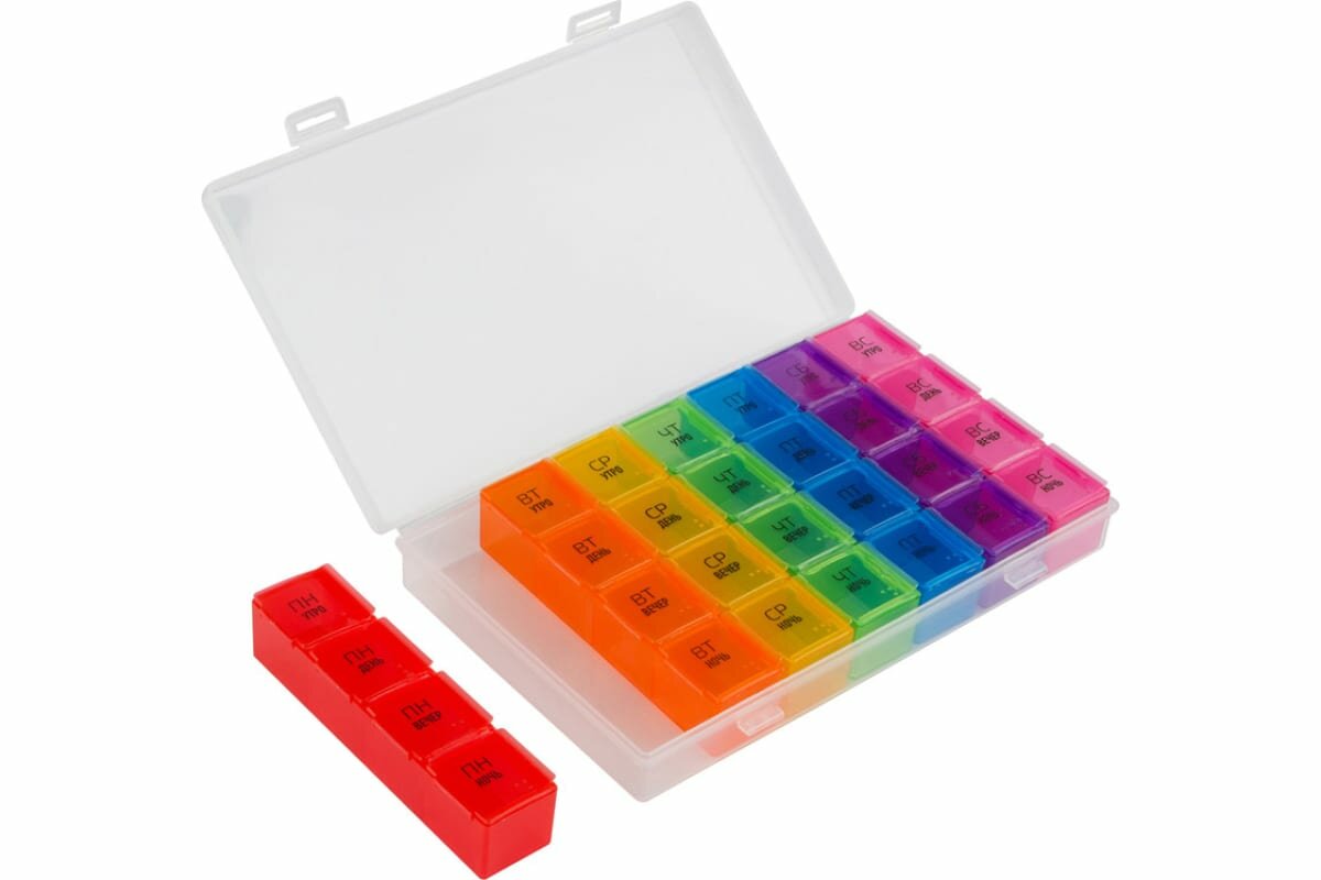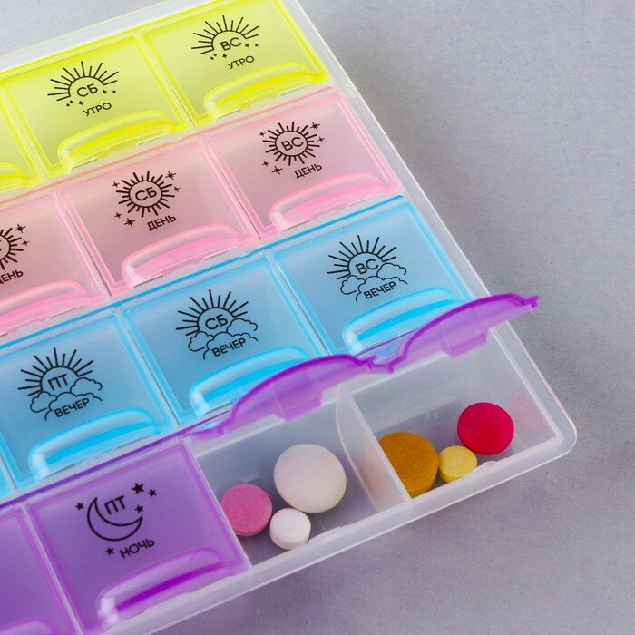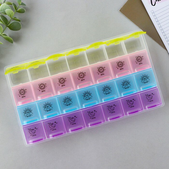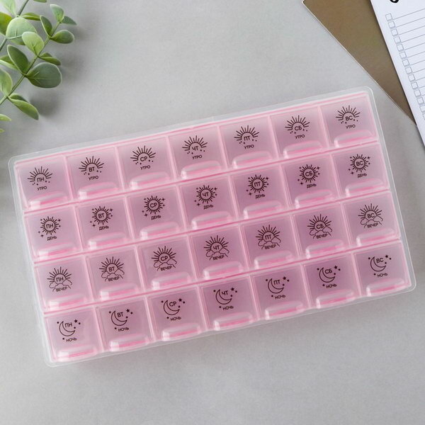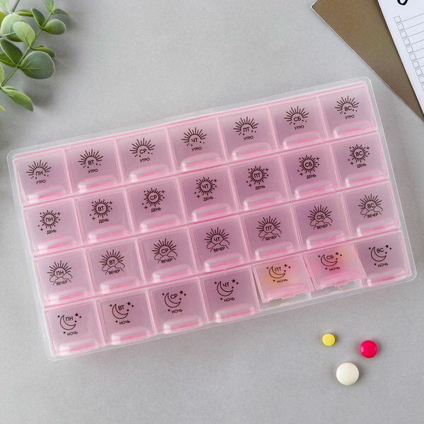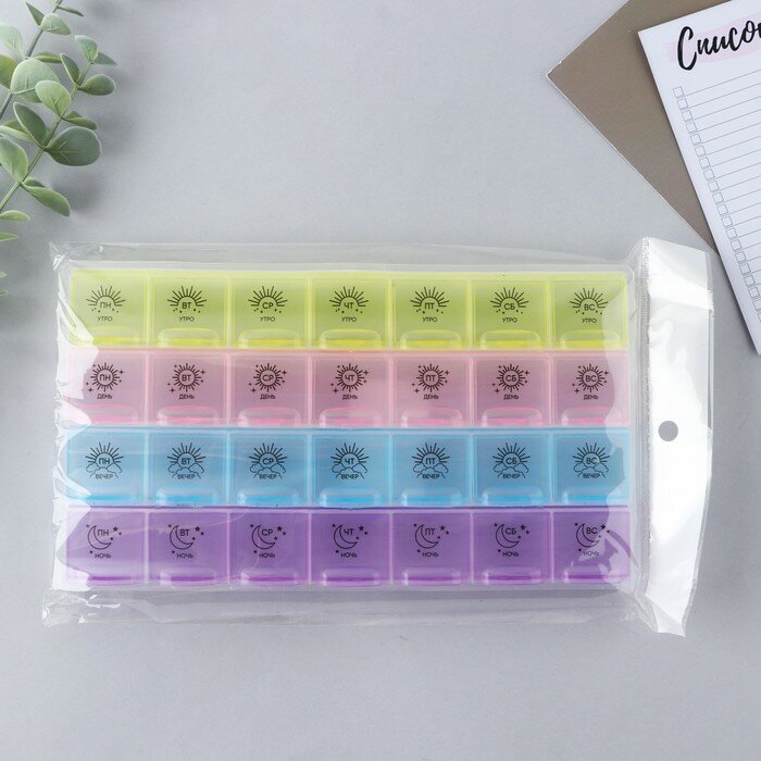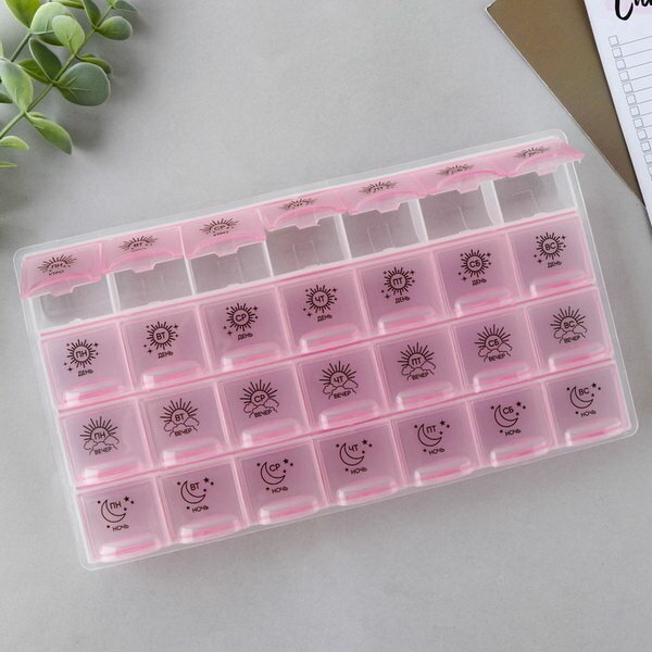 Таблетница органайзер, 28 секций, русские буквы, 21.6 х12 x 1.7 см интересное: