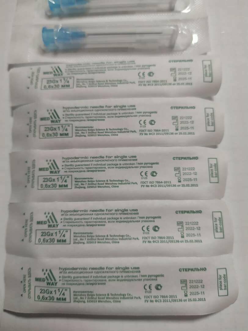 Игла инъекционная 100 шт/уп 23G 1 1/4 (0,6х30) одноразовая стерильная интересное: