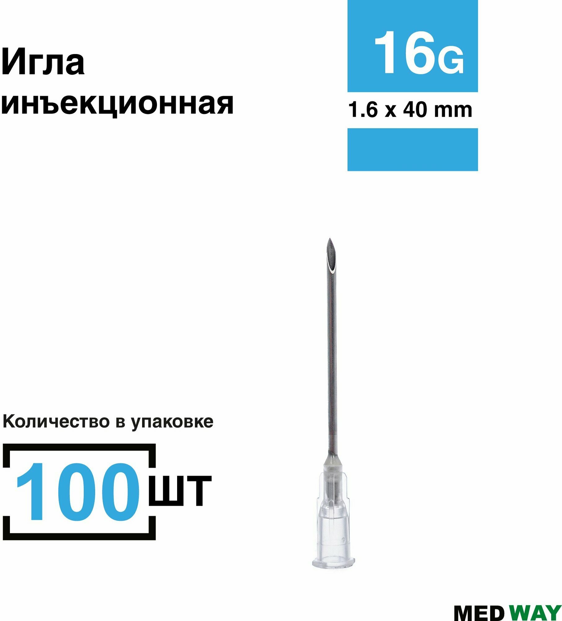 Игла инъекционная 100 шт/уп. 16G (1,6 х 40 мм), одноразовая стерильная интересное: